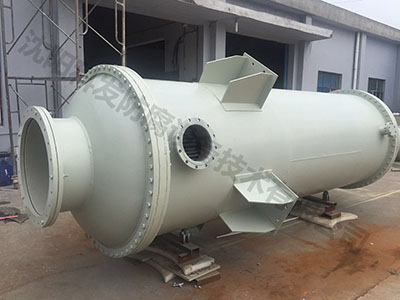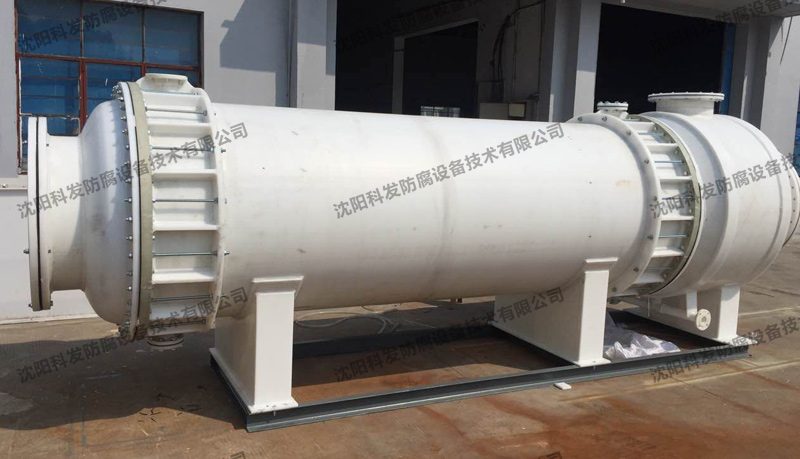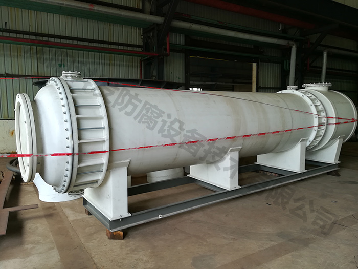 多級(jí)折流冷凝器換熱面積120㎡,殼程:FRPP,管程:改性高純石墨。