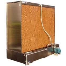 潔凈的自來水經(jīng)進(jìn)水管路進(jìn)入循環(huán)水箱中,進(jìn)水開關(guān)控制高水位;加濕器工作時,循環(huán)水泵將水箱中的水輸送到加濕器頂部的淋水器,淋水器確保水均勻分配到濕膜材料上,水從濕膜材料頂部向下滲透,被濕膜材料吸收,形成均勻的水膜;當(dāng)空氣通過加濕器時,水與空氣接觸,汽化、蒸發(fā),使空氣濕潤;沒有蒸發(fā)的水從加濕器底部流回循環(huán)水箱;循環(huán)水箱中的水通過水泵反復(fù)使用,達(dá)到節(jié)水的目的,從而使通過濕膜的空氣得到加濕。循環(huán)水箱內(nèi)的水下降到設(shè)定的高度時,進(jìn)水開關(guān)開啟給水箱補(bǔ)水,循環(huán)水箱內(nèi)的水循環(huán)一定時期后,通過水箱的排水口將水排出,清洗水箱,置換干凈的水,*保*了循環(huán)水和被加濕空氣不被二次污染,保持的潔凈性。